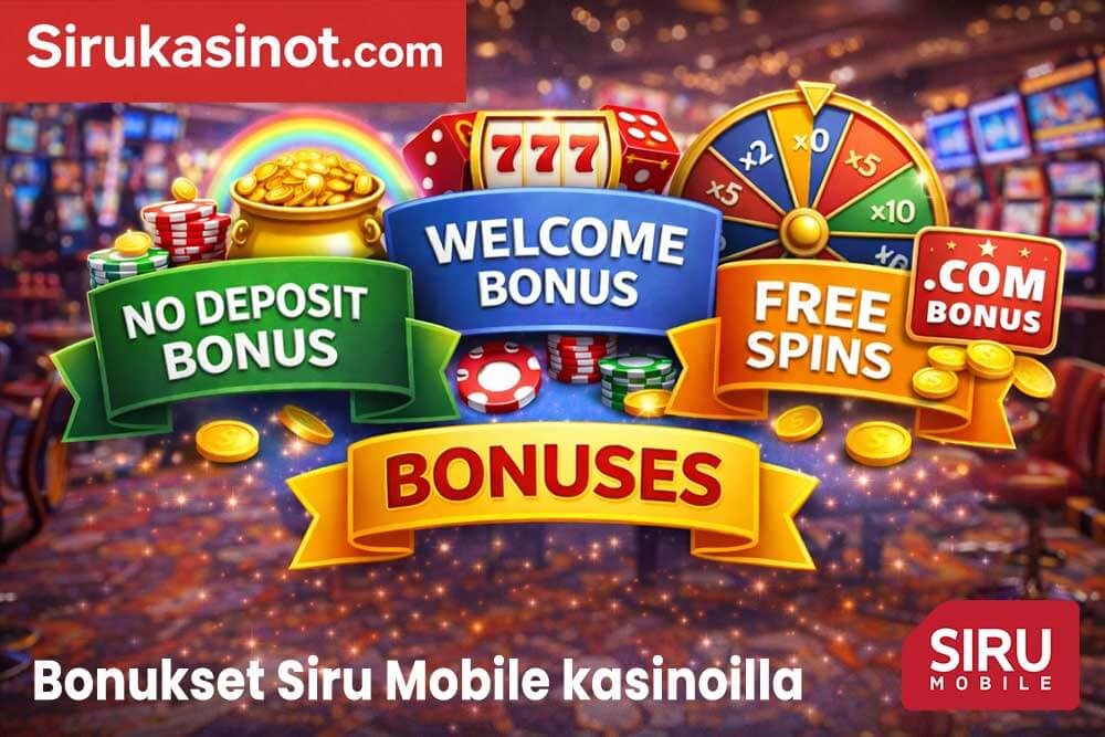 Lähes jokainen Siru Mobile casino tarjoaa kasinobonuksia kuten muutkin nettikasinot. Siru Mobilea ei yleensä rajata maksutapana bonusten ulkopuolelle, joten jos talletat sillä vähintään bonuksiin vaaditun minimin verran, saat bonukset käyttöösi. Koska osa kasinoista hyväksyy Siru Mobilen vain pieniin talletuksiin, ei talletus summaltaan kuitenkaan aina riitä bonusten lunastamiseen.