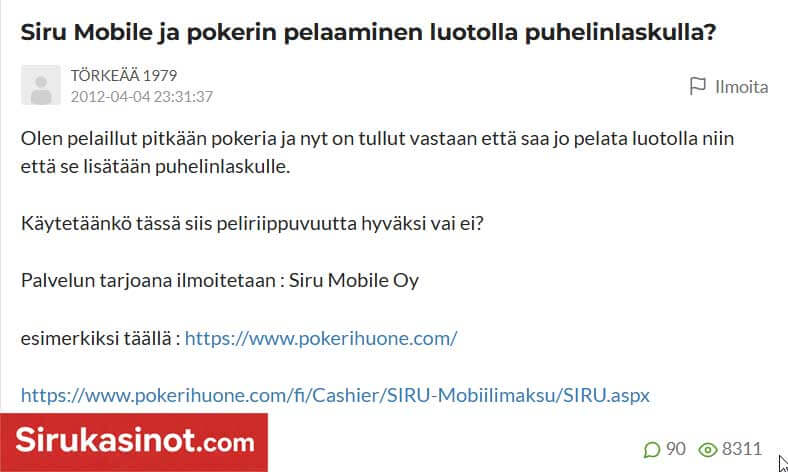 Siru Mobile kasinot ovat nettikasinoita, joilla voi tehdä talletuksia Siru Mobilen kautta.